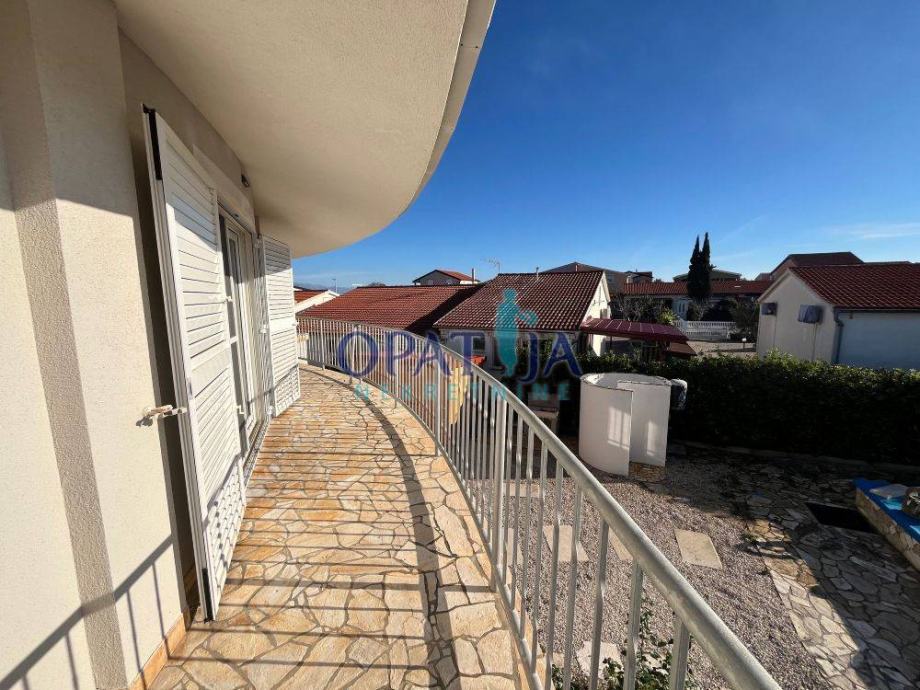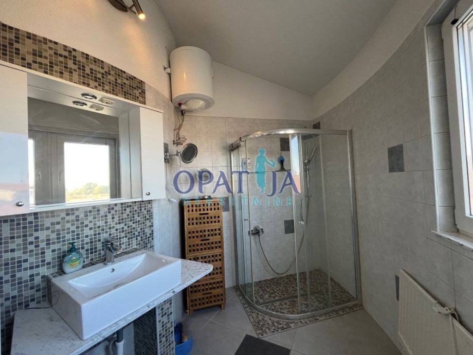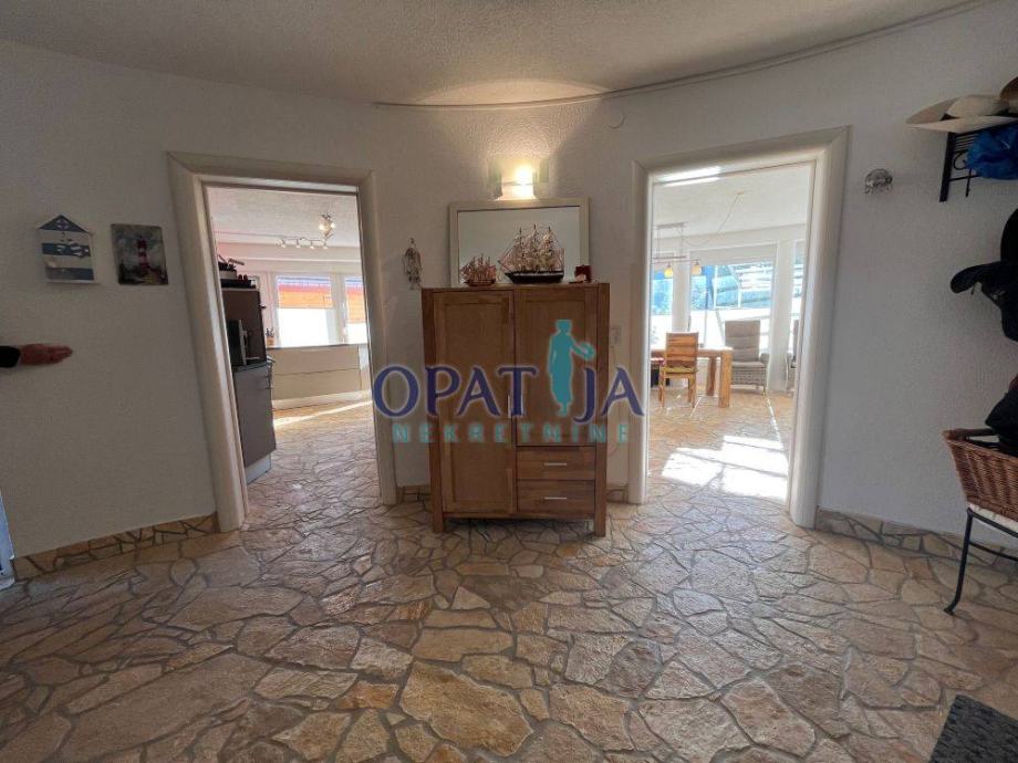 Prostoren, polkrožen vhod s steklenimi drsnimi vrati – uporaben kot zimski vrt ali pokrita terasa. Sledi širok hodnik, elegantno opremljena dnevna soba z izhodom na teraso, popolnoma opremljena kuhinja in moderna kopalnica. Po celotnem nadstropju so položene naravne kamnite ploščice iz Benkovca – značilnost dalmatinske kakovosti.