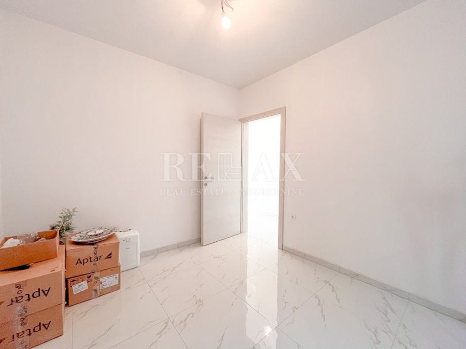 Stanovanje obsega vhodni hodnik, shrambo, dve spalnici, kopalnico, kuhinjo z jedilnico ter dnevno sobo, ki se nadaljuje na zunanji prostor. Ogrevanje je urejeno z električnim talnim gretjem, kar dodatno pripomore k občutku topline in udobja.