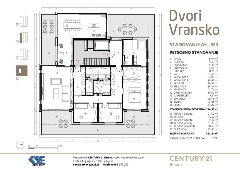 Novo naselje Dvori Vransko se nahaja le slabe pol ure iz Ljubljane. Dokončani so trije objekti, z različnimi tipi stanovanj, pensthouse stanovanje pa se nahaja na vrhu objekta in se razteza preko celotne površine. Ima lasten dostop.