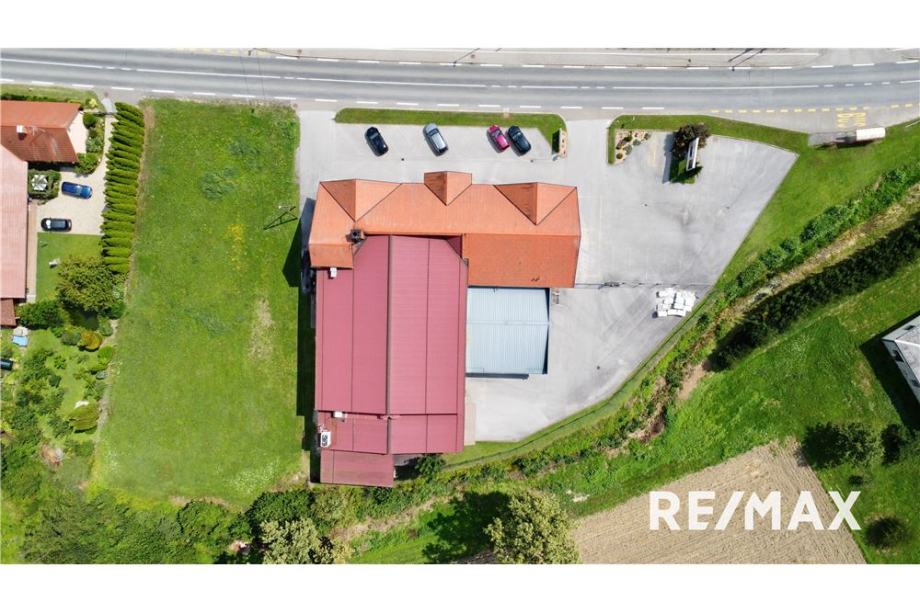 Prostori objektov v izmeri 1.827 m2 so razporejeni v dveh etažah, v pritličju 1061 m2 in v nadstropju 766 m2. Parcela je v celoti urejena, pred objektom je velik asfaltiran parkirni prostor ( 20 mest), oz. dovoz v skladiščni del ob strani salona. Pred parkirišči je tudi urejena zelenica. Zemljišče meri 3270 m2, je pa možen dodaten dogovor tudi za nakup sosednjega zemljišča, travnika v izmeri 1447 m2.
