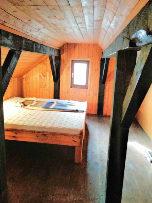 Posest sredi gozda. Lesena hiška 56m2. Dva ribnika v katerih plavajo postrvi. Uta z 2m kaminom. Lastni vodovod. Elektrike ni, LED razsvetljava z akumulatorjem. Dostop po gozdni cesti. Prva hiša 1300m. Idealno za ljubitelje narave, lovce, gobarje, planince. Kod celota je redkost na tržišču.