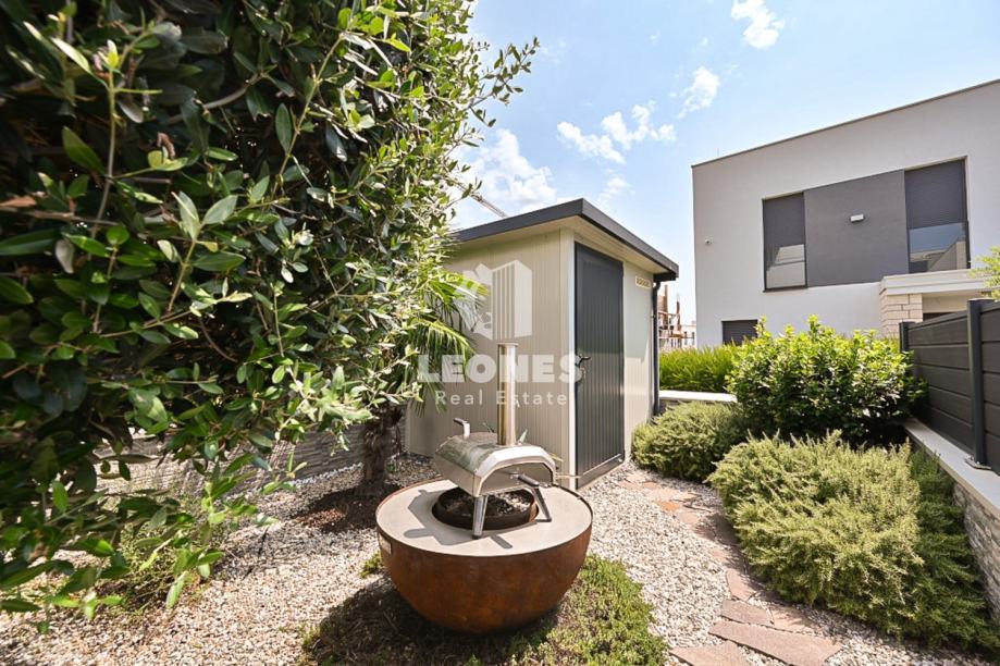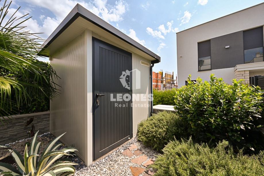 Hiša se prodaja popolnoma opremljena, ima svojo vrtno hišico, zunanjo shrambo za kolesa in parkirni prostor.
