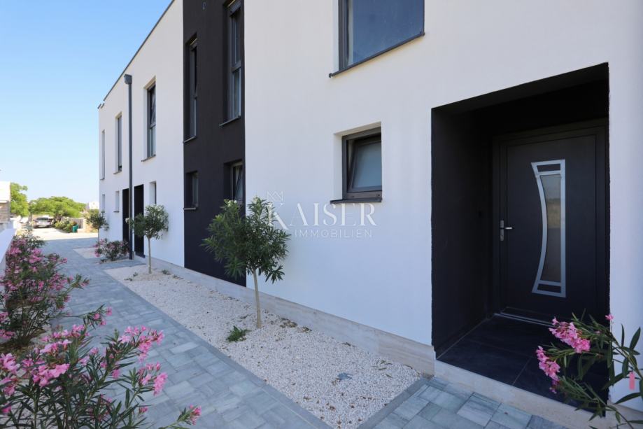 Kaiser Immobilien ponuja privlačno vrstno stanovanjsko stavbo, ki jo sestavljajo štirje moderni apartmaji. Ta nepremičnina se nahaja v mirnem in tihem delu Privlake, le 400 metrov od centra mesta in morske obale, zaradi česar je idealna izbira za družinsko življenje ali kakovostne počitnice. Vsako stanovanje v stavbi je zasnovano s poudarkom na funkcionalnosti, sodobnem dizajnu ter visoki stopnji udobja in zasebnosti. Apartmaji so prostorni, polni naravne svetlobe in imajo optimalno razporeditev prostorov. Vsako stanovanje ima svoj vrt in teraso, stavba pa ima tudi zavarovana parkirna mesta. Ponujamo vam dvonadstropno stanovanje z oznako S2, s skupno bruto površino 158,90 m², medtem ko izračunana uporabna površina znaša 108,04 m². Stanovanju pripadata dve parkirni mesti in vrt velikosti 33 m², kar še poveča vrednost in kakovost izrabe prostora. Ob vhodu je pokrit vhod, ki vodi v hodnik, nato pa v kopalnico in pralnico. Osrednji del spodnjega nadstropja sestavlja prostorna dnevna soba, povezana s kuhinjo in jedilnico v konceptu odprtega prostora, ki se odpira na pokrito teraso in vrt - popoln kraj za sprostitev in preživljanje časa na prostem. Notranje stopnice vodijo v prvo nadstropje, kjer se nahaja dodatna kopalnica in tri udobne spalnice, ki zagotavljajo zasebnost in mir za vsakega člana družine. Stanovanje se prodaja popolnoma opremljeno, vključno s kuhinjo z aparati, jedilno mizo s stoli, kotno sedežno garnituro, televizorjem v dnevni sobi, pralnim strojem, vgradno omaro v hodniku, pa tudi posteljami in vgradnimi omarami v vseh treh spalnicah. Ta raven opreme kupcu omogoča takojšnjo vselitev, brez dodatnih stroškov in organizacije dekoracije. Tla so že dokončana in prekrita s kakovostnimi materiali: v hodniku, kuhinji, kopalnicah in na terasi so položene keramične ploščice, medtem ko imajo dnevna soba in spalnice laminatna tla, ki prostoru zagotavljajo dodatno toplino in vizualno udobje. Okna so PVC s troslojnim steklom, rolete in komarniki, kar zagotavlja odlično toplotno in zvočno izolacijo. Stanovanje je v celoti klimatizirano – klimatske naprave se nahajajo v dnevni sobi in vseh spalnicah, po celotnem stanovanju pa je električno talno ogrevanje, ki zagotavlja udobno temperaturo v zimskih mesecih. Vhodna vrata so protivlomna in protipožarna, kar še dodatno poveča raven varnosti. Lokacija stavbe omogoča hiter dostop do vseh pomembnih ugodnosti – trgovin, restavracij, klinike, lekarne, pošte in javnega prevoza, morje pa je oddaljeno le nekaj minut hoje. Ta nepremičnina je idealna tako za družinsko življenje kot kot naložba za turistični najem. Stanovanje se nahaja v Privlaki, očarljivi dalmatinski vasici na polotoku, znani po peščenih plažah, kristalno čistem morju in bližini zgodovinskega mesta Zadar. Privlaka ponuja popolno ravnovesje med sproščujočim življenjem ob morju in razpoložljivostjo vseh mestnih ugodnosti. Njena priljubljenost med domačimi in tujimi obiskovalci nenehno narašča zaradi ohranjene narave, prijetnega vzdušja in odličnih prometnih povezav. Bližina vsebine: Privlaka – Nin: 5 km Privlaka – Zadar: 20 km Privlaka – Letališče Zadar: 32 km Oddaljenost od večjih mest: Privlaka – Ljubljana: 358 km Privlaka – Budimpešta: 640 km Privlaka – München: 764 km Privlaka – Dunaj: 651 km Privlaka – Praga: 925 km Agencijska provizija za kupca je 3% + DDV in se plača ob sklenitvi prvega pravnega akta. ID KODA: 128-013 Za dodatne informacije in dogovor o ogledu nepremičnine se obrnite na: Nina Fabijan