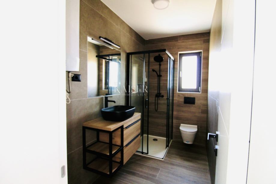 Zadar, Privlaka, prostorno, moderno stanovanje 70 metrov od morja Kaiser Immobilien ponuja v prodajo prostorno in moderno stanovanje v novi stavbi, ki se nahaja v drugem nadstropju stavbe, ki je le 70 metrov od morja. Skupna neto površina stanovanja skupaj z deli je 94,96 m2, površina samega stanovanja s teraso pa 76,93 m2. Apartma je sestavljen iz svetle in zračne odprte dnevne sobe, kuhinje in jedilnice z izhodom na pokrito teraso, idealno za sprostitev in uživanje na prostem s pogledom na morje. V stanovanju sta dve spalnici. Glavna spalnica ima svojo kopalnico, medtem ko se druga kopalnica nahaja na hodniku, kar nudi dodatno udobje za goste ali druge družinske člane. Poseben dodatek je strešna terasa velikosti 72,10 m2, ki nudi popoln prostor za sprostitev in zabavo. Na terasi je bazen, pergola in žar, zaradi česar je ta nepremičnina idealna za uživanje v življenju na prostem, bodisi z družino ali prijatelji. Stanovanje se prodaja neopremljeno, kar omogoča bodočim lastnikom, da notranjost prilagodijo svojim okusom in potrebam. V ceno sta vključeni dve parkirni mesti, kar dodatno olajša vsakdan. To čudovito stanovanje se nahaja v moderno zasnovanem objektu s skupno šestimi stanovanji, zgrajenim iz najkakovostnejših materialov. Objekt je obložen s toplotno izolacijo iz stiroporja debeline 10 cm, ki zagotavlja vrhunsko toplotno zaščito in energetsko učinkovitost. Poleg tega ima stanovanje energetsko izkaznico A+. Stanovanje ima odlično kombinacijo talnih oblog: na hodniku, kuhinji, kopalnici in na terasi so položene kvalitetne keramične ploščice, dnevna soba in spalnice pa so obložene z laminatom, ki zagotavlja. toplino in udobje. Okna so PVC, s troslojno zasteklitvijo, senčili in komarniki, ki zagotavljajo dodatno izolacijo in zaščito. Apartma je klimatiziran in ima v vseh prostorih električno talno ogrevanje, kar zagotavlja udobje v hladnejših mesecih. Vhodna vrata stanovanja so protivlomna in protipožarna, kar zagotavlja visoko stopnjo varnosti. Ta apartma se nahaja v mirnem dalmatinskem naselju Privlaka, znanem po čistih plažah in bližini Zadra. Oddaljenost od morja je le 70 metrov, zaradi česar je odlična izbira za tiste, ki želijo uživati življenje ob morju. Središče mesta je oddaljeno 1,2 km, medtem ko je Zadar oddaljen le 20 km, kar omogoča hiter dostop do vseh urbanih vsebin. Ta nepremičnina je idealna za vse, ki iščejo moderen, udoben in luksuzen apartma v bližini morja. Oddaljenost od večjih mest: • Privlaka – Ljubljana: 358 km • Privlaka – Budimpešta: 640 km • Privlaka – München: 764 km • Privlaka – Dunaj: 651 km • Privlaka – Praga: 925 km Cena in pogoji: Agencijska provizija za kupca znaša 3 % + DDV in se plača ob sklenitvi prvega pravnega akta. Za več informacij kontaktirajte: Nina Fabijan Tel: +385 955046197 E-pošta: nina@kaiser-immobilien.hr