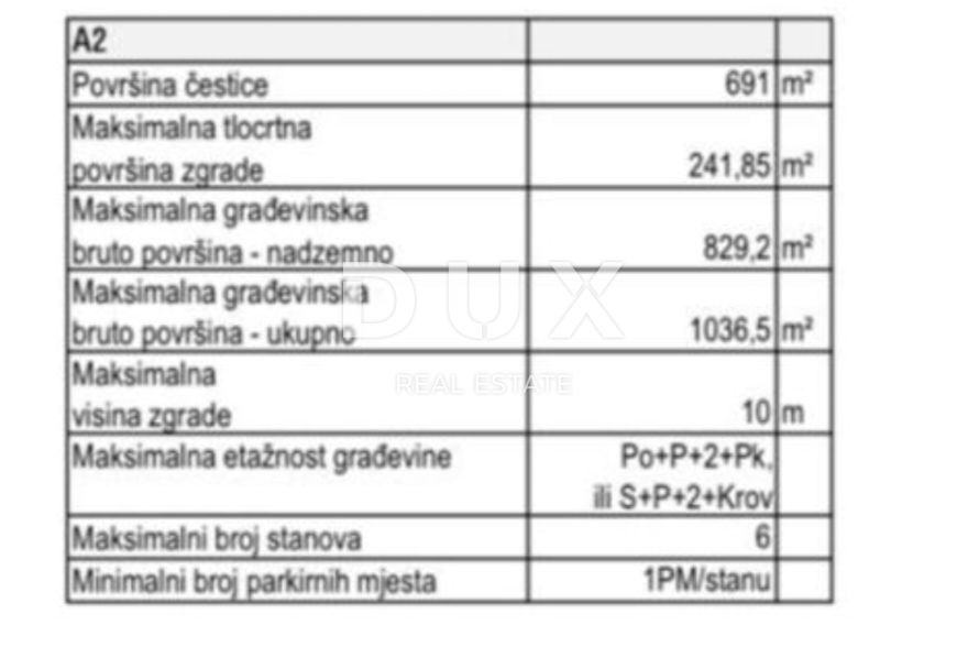 Prodamo zazidljivo zemljišče 691 m2, ki se nahaja na atraktivni lokaciji v Sabunikah, le 400 m od morja! Idealna investicijska priložnost - možna je gradnja stavbe s 6 stanovanji. V bližini so razkošne vile in moderni apartmaji, okolje pa izžareva mir in eleganco. Širina dovozne ceste je 5 metrov, voda in elektrika pa le 60 metrov od parcele. Zadar je oddaljen le 25 minut vožnje z avtomobilom. Izkoristite to edinstveno priložnost in ustvarite svoj košček raja na Jadranu. Kontaktirajte nas za več informacij!