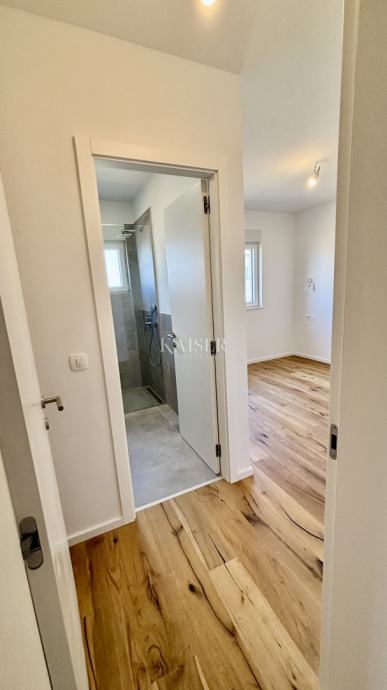 Kaiser Immobilien predstavlja: Prostorno stanovanje s pogledom na morje – 50 m od plaže, 1. nadstropje V majhni, luksuzni stanovanjski stavbi s skupno šestimi enotami, ki se nahaja na izjemno mirni in zaželeni lokaciji, le 50 metrov od kristalno čistega morja in urejene plaže, se nahaja to vrhunsko stanovanje v prvem nadstropju – popolna kombinacija sodobne arhitekture, prostorne notranjosti in pogleda na morje. Prostorna in funkcionalna razporeditev: Stanovanje z oznako S3 obsega 111,20 m2 zaprtega bivalnega prostora, ki mu dodatno vrednost daje pokrita terasa velikosti 19,56 m2 – idealna za zajtrke na prostem in sprostitev z odprtim pogledom na morje, ki se razteza tudi iz dnevne sobe. Sestavljen je iz: Dnevne sobe s kuhinjo in jedilnico (49,41 m2) - prostoren, svetel prostor z dostopom na teraso in pogledom na morje Glavna spalnica (12,96 m2) z lastno kopalnico (3,76 m2) Dve dodatni spalnici (11,02 m2 in 12,47 m2) Druga kopalnica (6,24 m2) in ločen WC (1,00 m2) Dva hodnika (7,46 m2 in 4,88 m2), ki povezujeta dnevni in spalni prostor Površine: Bivalna površina: 111,20 m2 Pokrita terasa: 19,56 m2 (preračunano 14,67 m2) Zunanje parkirno mesto: 12,50 m2 (preračunano 2,50 m2) Parkirno mesto v garaži: 12,50 m2 (preračunano 6,25 m2) Skupna neto prodajna površina: 134,62 m2 Bruto površina (z dodatki): 155,76 m2 Tehnična oprema in zaključna obdelava: Aluminijaste drsne stene z velikimi steklenimi površinami PVC stavbno pohištvo z električnimi roletami Mitsubishi toplotne črpalke + klimatske naprave v vseh prostorih Možnost vgradnje kamina (dimnik je predviden) Talne obloge: keramika v kopalnicah in stranišču, parket v preostalem delu stanovanja Toplotna izolacija: 10 cm polistiren Opomba: Stanovanje se ne prodaja opremljeno, kar novim lastnikom pušča svobodo, da si ga uredijo po svojem okusu. Ta nepremičnina ponuja idealne pogoje za mirno življenje ob morju, luksuzne počitnice ali turistično naložbo. Uživajte v odprtem pogledu na morje iz dnevne sobe in s prostorne terase - vsak dan postane praznik! Bližina ugodnih ponudb: Sukošan – Zadar: 10 km Sukošan – Letališče Zadar: 11 km Oddaljenost do večjih mest: Sukošan – Ljubljana: 345 km Sukošan – München: 750 km Sukošan – Dunaj: 640 km Sukošan – Budimpešta: 625 km Sukošan – Praga: 910 km Za vse dodatne informacije in oglede nas prosimo kontaktirajte. Kaiser Immobilien – ker bi moral imeti vsak dom svojo zgodbo. Tel.: +385 955046197 E-pošta: nina@kaiser-immobilien.hr ID KODA: 128-55 Agencijska provizija za kupca znaša 3 % + DDV in se plača v primeru nakupa nepremičnine, ob sklenitvi prvega pravnega dejanja.