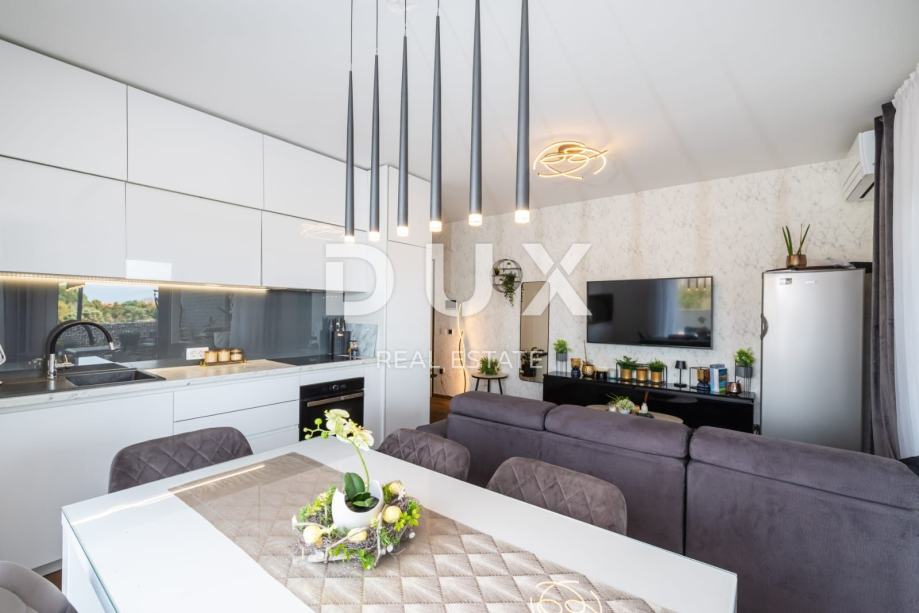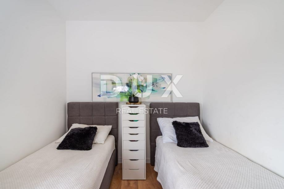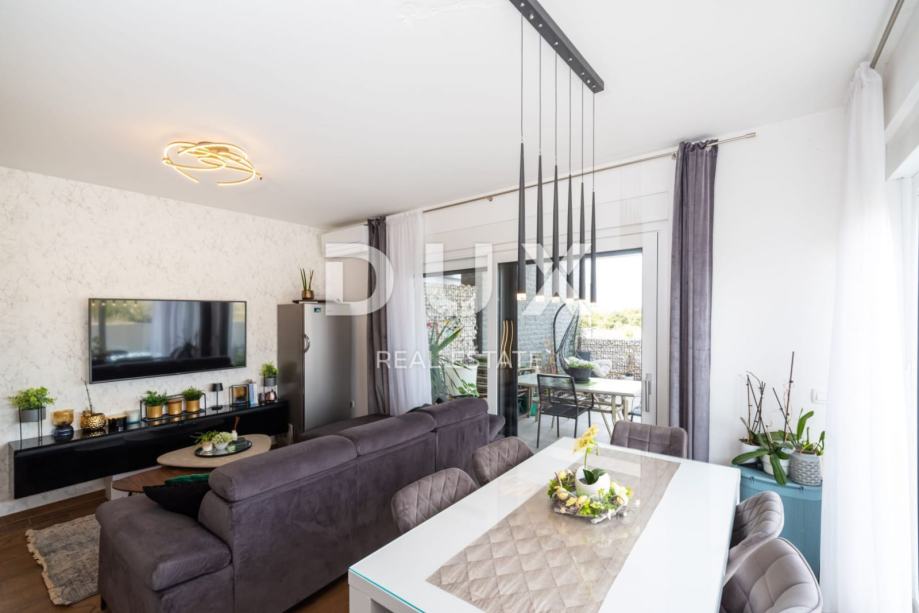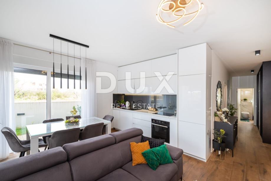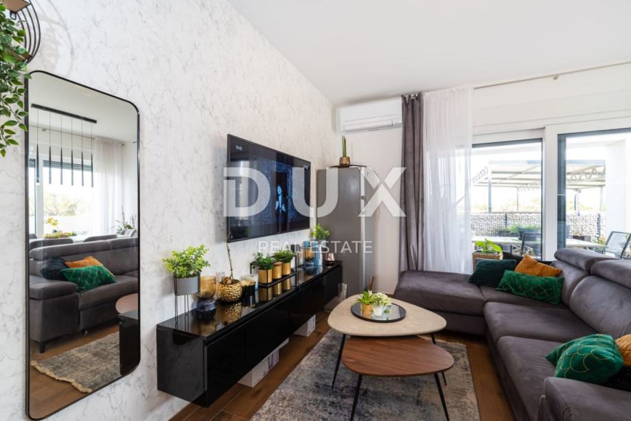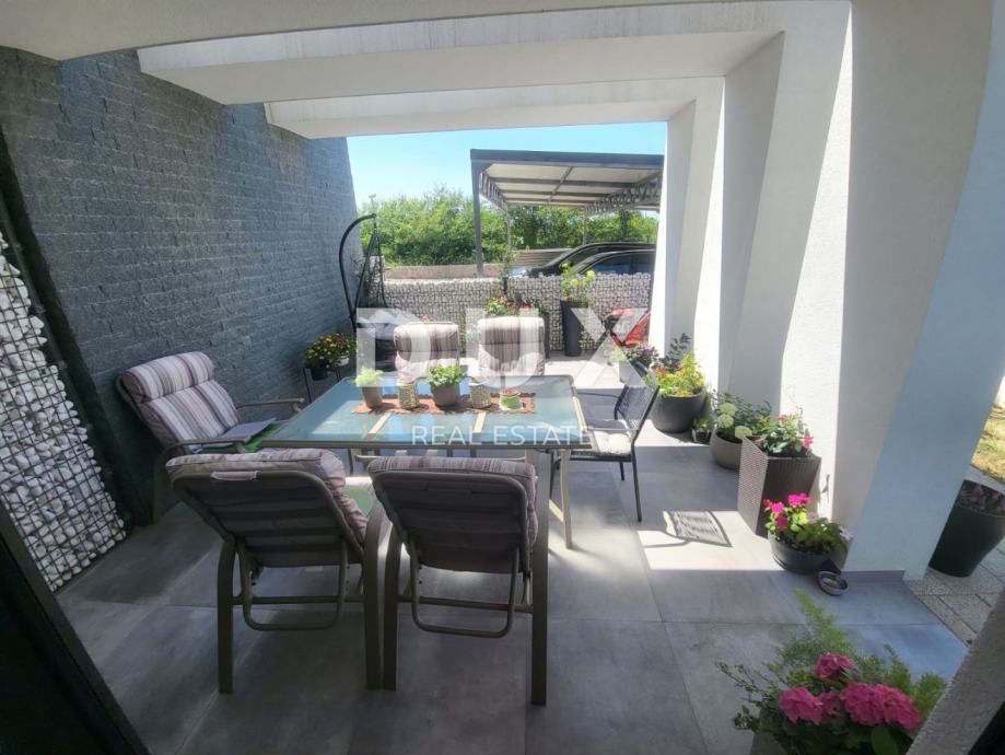 ZADAR, ZATON - Moderno stanovanje z vrtom Prodamo moderno stanovanje v Zatonu pri Zadru. Stanovanje z bivalno površino 56,53 m2 se nahaja v pritličju manjšega stanovanjskega objekta. Sestoji iz dnevne sobe, kuhinje in jedilnice, dveh spalnic, kopalnice in hodnika. Stanovanju pripada tudi pokrita terasa in vrt 96 m2 ter parkirno mesto na dvorišču stavbe. Stanovanje je klimatizirano in ima talno ogrevanje. Za talne obloge so bile uporabljene keramične ploščice in parket, PVC stavbno pohištvo. Skupna vrednost površine stanovanja je 184,28 m2 (kvadratni meter 75,10 m2). Mesto Zaton je izjemno priljubljena turistična destinacija, glede na čudovite plaže na tem območju in bližino urbanega centra Zadra, ki je oddaljen le 15 km. Tik ob Zatonu se nahaja zgodovinsko mesto Nin, znano po številnih zanimivih zgodovinskih in kulturnih spomenikih, ki segajo v prazgodovino. V Ninu je tudi najdaljša peščena plaža na Hrvaškem Kraljičina plaža. V Ninski laguni je tudi nahajališče z zdravilnim blatom Peloid, katerega blagodejne lastnosti so bile znane že v rimskih časih. Cenjene stranke, agencijska provizija se obračunava v skladu s Splošnimi pogoji poslovanja www.dux-nekretnine.hr/opci-uvjeti-poslovanja