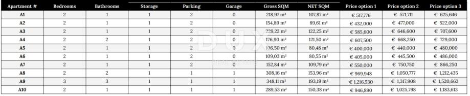 V mirnem in očarljivem mestecu Zaton, le 45 metrov od plaže, se nahaja nova moderna stavba z dvema vhodoma in dvema dvigaloma, ki skriva deset ekskluzivnih apartmajev. Vsak od njih je bil skrbno zasnovan za maksimalno udobje in uživanje - apartmaji v pritličju so obogateni z zasebnimi vrtovi, apartmaji v srednjih nadstropjih imajo prostorne terase, penthousi pa ponujajo strešne oaze z instalacijami za letne kuhinje in jacuzzije, idealne za sproščena večerna druženja ob sončnem zahodu. Vsi apartmaji so opremljeni s klimatsko napravo v vsaki sobi, penthousi pa imajo dodatno talno ogrevanje po celotni notranjosti. Apartma A4 v prvem nadstropju z neto površino 121,5 m2 združuje funkcionalnost in eleganco. Razporeditev vključuje dve spalnici, dve kopalnici, dodatno stranišče, kuhinjo in svetlo dnevno sobo. Odlikuje ga prostorna pokrita terasa, ki odlično povezuje notranje in zunanje prostore. Apartmaju pripadata tudi dve parkirni mesti in shramba, oprema pa vključuje električne rolete, varnostna vrata in video domofon. Kupci imajo tudi možnost prevzema popolnoma opremljene notranjosti, kar jim omogoča vselitev brez dodatnih skrbi. Posebna ugodnost – kupec je oproščen plačila davka na nepremičnine, ker je prodajalec pravna oseba. Zaton je znan po dolgih prodnatih plažah, kristalno čistem morju in mirnem vzdušju, ki združuje tradicionalno dalmatinsko vzdušje s sodobnimi ugodnostmi. V neposredni bližini se nahaja letovišče s številnimi ugodnostmi – restavracijami, kavarnami, športnimi igrišči in wellness programi, zaradi česar je ta kraj idealen tako za počitnice kot za življenje skozi vse leto. Le deset minut vožnje stran je Zadar, mesto bogato z zgodovino in kulturo, svetovno znano po rimskih forumih, romanskih cerkvah, Morskih orglah in Pozdravu soncu. Če iščete kombinacijo razkošja, udobja in mediteranskega načina življenja, nas kontaktirajte za več informacij in za dogovor o ogledu.