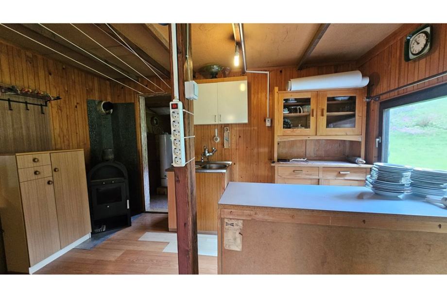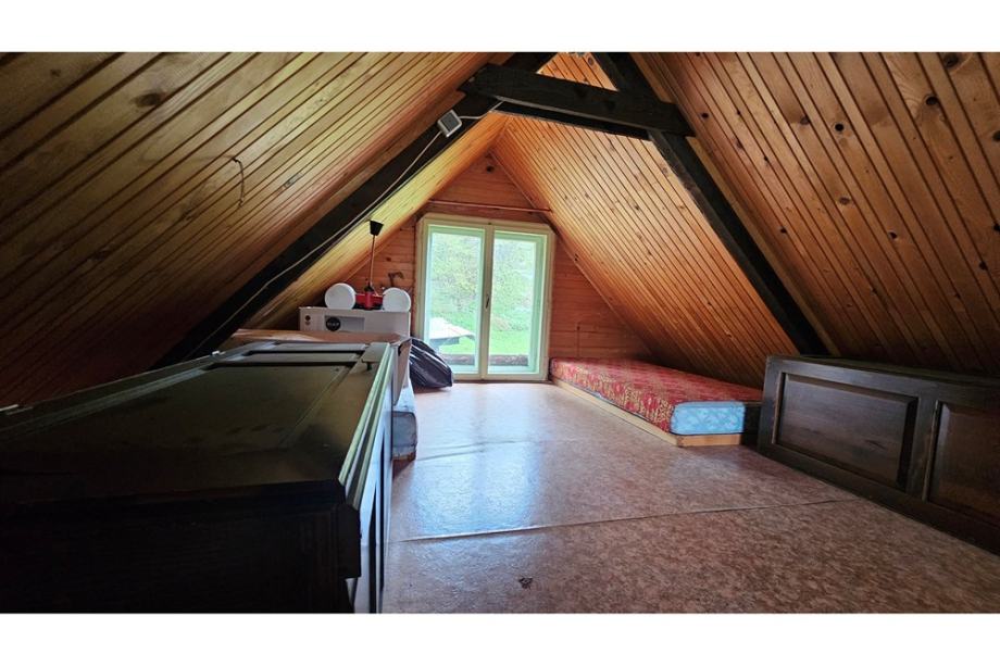 Na zemljišču se nahaja brunarica, ki so jo lastniki uporabljali med časom gradnje hiše. Je primerna za bivanje. Lahko jo uporabljate za vikend hiško.. Priključena je na električno in vodovodno omrežje preko sedanjega lastnika. Potrebno bo v prihodnosti urediti lasten priključek. Sestoji iz dnevnega prostora z kuhinjo, kopalnice in spalnih prostorov v mansardi.