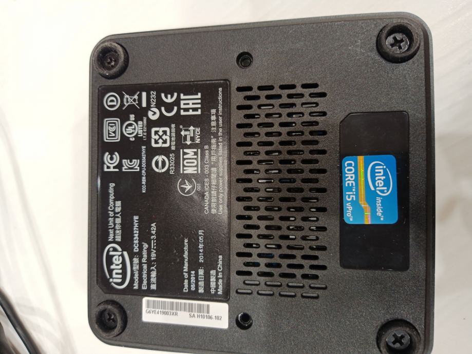 Odličen mini PC namizni računalnik Intel NUC DC53427HYE, z procesorjem i5-3427U, hitrim 240Gb SSDjem ter 4Gb RAMa. Primern kot hišni računalnik ali se bolje kot hišni kino. Ima HDMI izhod. Priložen napajalnik.