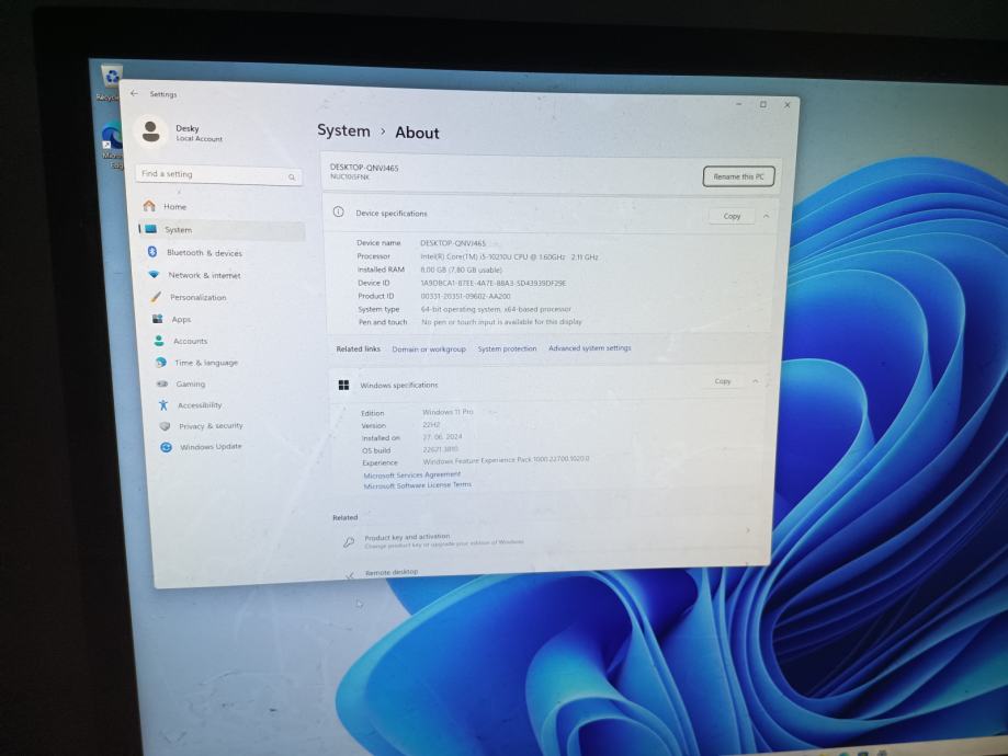 Hiter in dobro delujoč namizni računalnik INTEL NUC, z procesorjem i5-10210U, 8Gb RAMa ter hitrim NVMe 256Gb SSD diskom. Vgrajena WiFi kartica. Primeren kot hišni računalnik ali se bolje kot hišni kino v kombinaciji z LCD televizorjem. V kompletu je še napajalnik.