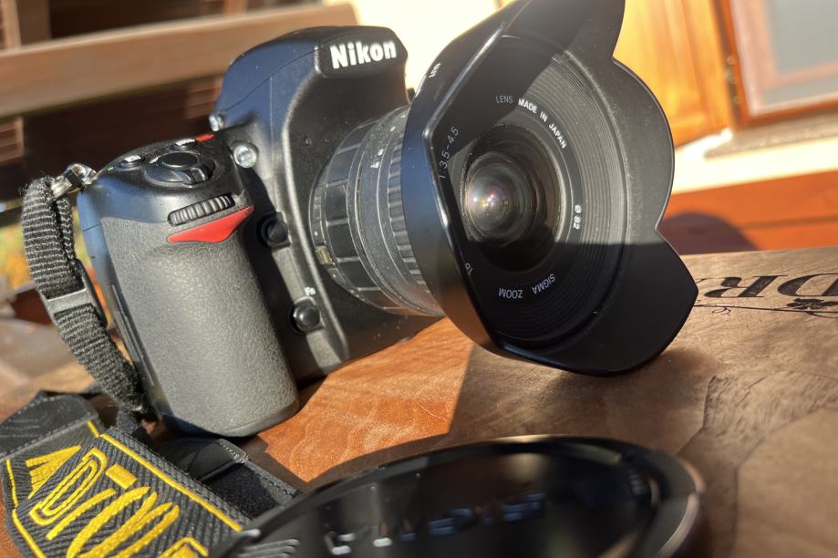 Nikon D700 (Fx) z širokokotnikom Sigma 18-35mm f3,5-4,5 full frame, ohišje je praktično novo - PRIMERNO ZA DARILO! Prestižen model: mehko upravljanje stikal, kolutov in gumbov je nežnejše kot pri novejših modelih D750, D800, D810 iz Tajvana - barvni spekter je bolj naraven, boljši ISO-Low kot pri D800. Razkošen MENU je optimalno nastavljen, vse bližnjice so na dosegu prsta, kvaliteta izdelave ohišja in fotografij je v samem vrhu. Original polnilec, baterija status NEW, ohišje ima 24kilo proženj in je brez skritih napak! Fotke so od dotičnega primerka, ki je na voljo. MADE IN JAPAN! ... (v ceni je tudi objektiv)