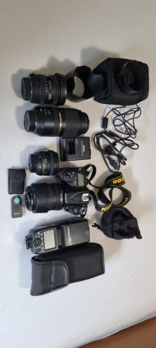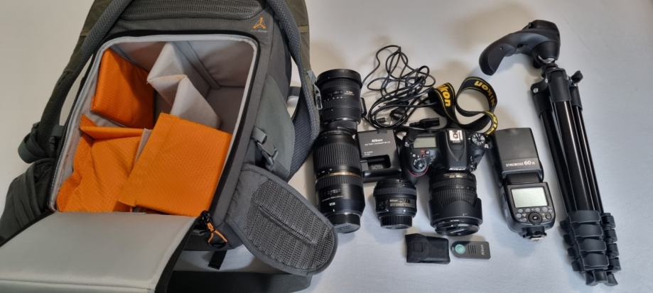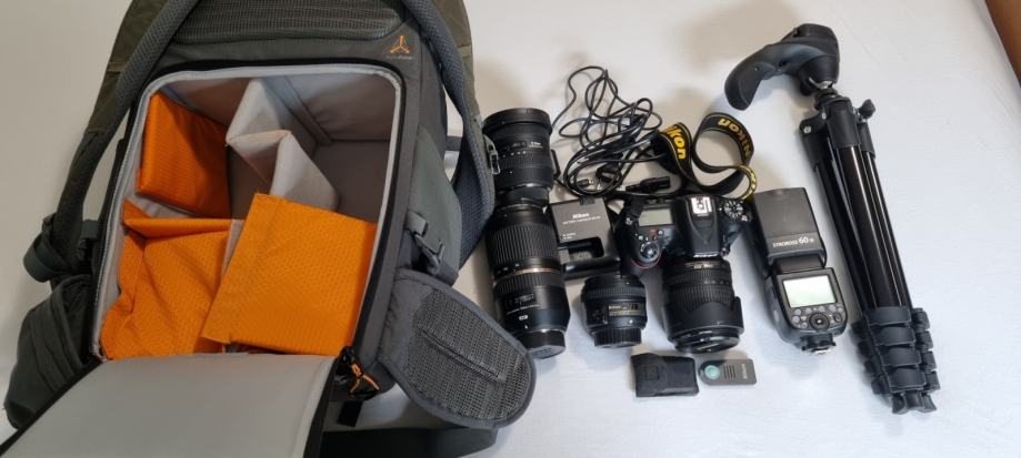 8, 70-300, stativ, bliskavica, daljinec, filtri, nahrbtnik.