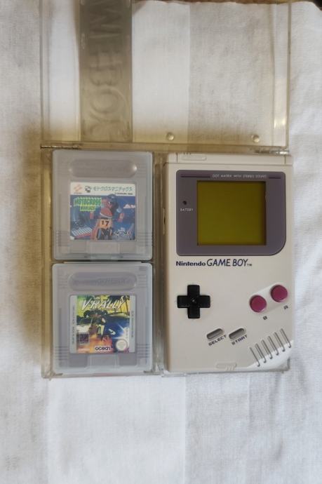 Odlično ohranjena retro konzola Gameboy DMG-01 v originalnem in izpravnem stanju. Poleg dodam 6 delujočih iger: