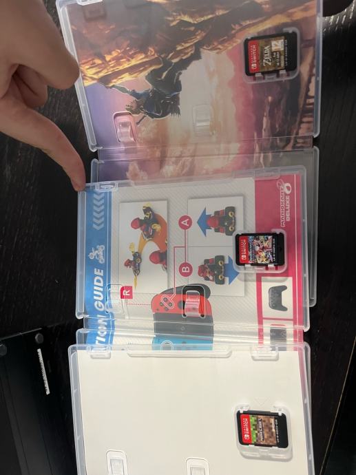Prodam Nintendo Switch s Joy-Con kontrolerjema v modri in rdeči barvi. V paketu je konzola z dockom, napajalnik, Joy-Con grip, oba Joy-Con prstana ter zaščitna torbica za prenašanje. Priložene so tudi tri igre: Mario Kart 8 Deluxe, Minecraft in The Legend of Zelda: Breath of the Wild.