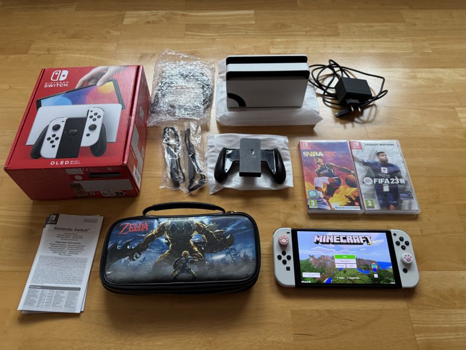 Nintendo Switch OLED (White) + Zelda Case + 3 igre