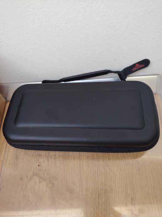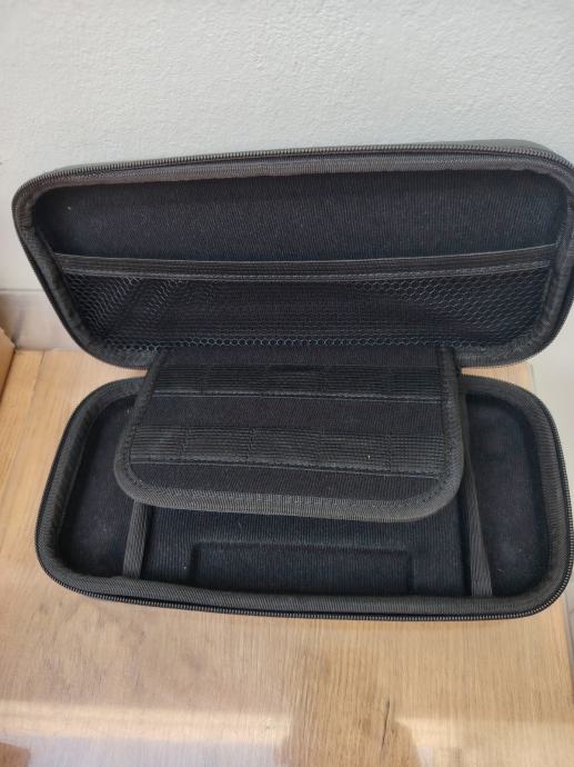 Prodajam rabljeno prenosno torbico za Nintendo Switch v črni barvi. Torbica je trpežna, z zadrgo in ročajem za lažje prenašanje. Notranjost ponuja dobro organiziran prostor z dodatnim predelkom za varno shranjevanje konzole in dodatkov.