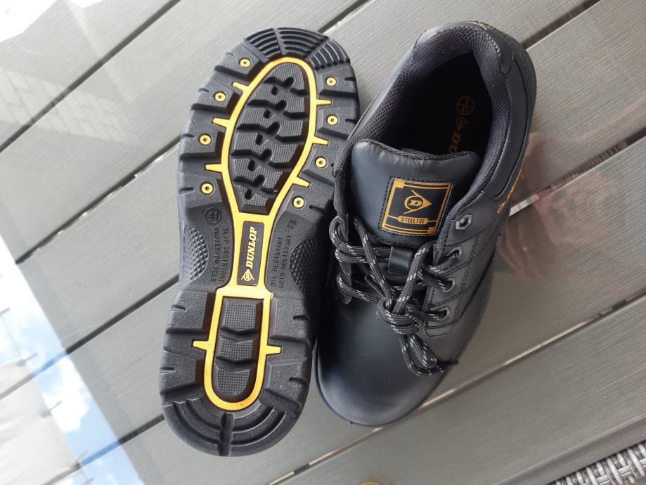 Na voljo so novi,nerabljeni delovni čevlji Dunlop s kapico številka 41 v črni barvi s priložene slike.