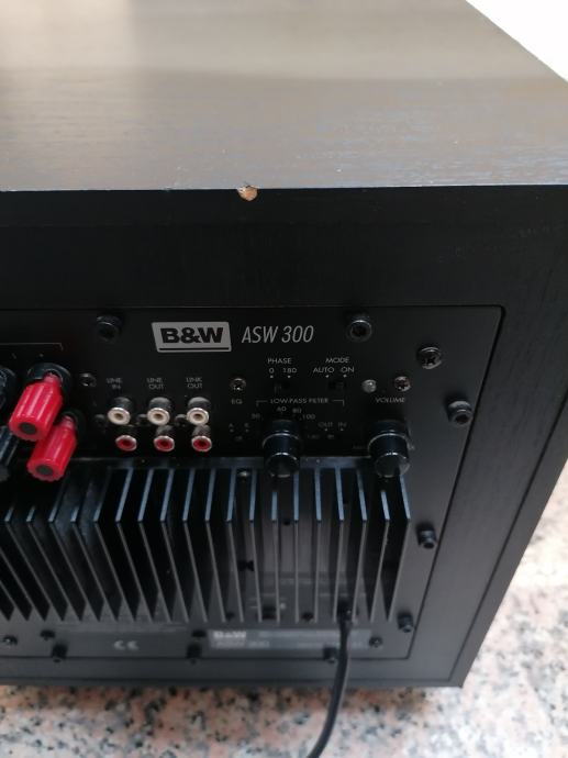 Prodam dobro ohranjeni nizkotonec. B&W Bowers & Wilkins ASW300 8" aktivni nizkotonec 100 W. Na zadnji strani na vrhu je opazna mala udrtina , razvidno tudi na fotografiji. Vse ostalo deluje kot v novem stanju.