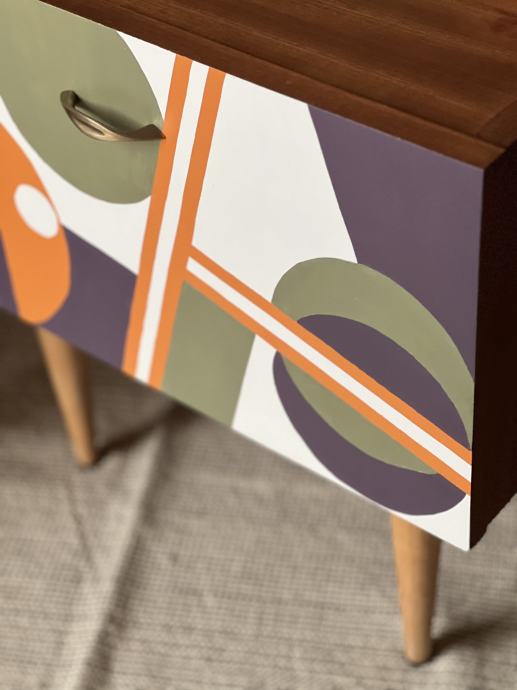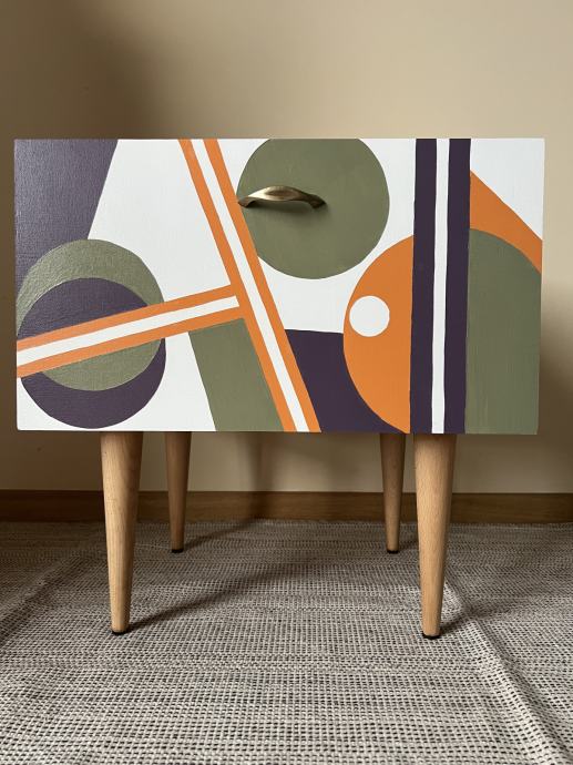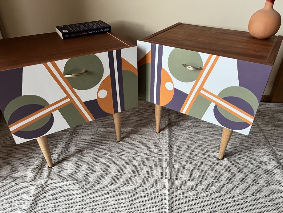 Prodam prenovljeni nočni omarici, mere: 44x33,5 cm, višina 45 cm. Material je furnirana iverka, noge pa iz masivnega lesa bukve. Unikat. Cena je za obe omarici skupaj.