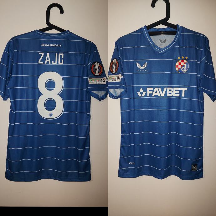 Prodajam rabljen nogometni dres Dinama Zagreb s številko 8 in imenom Miha Zajc, velikosti L. Dres je iz sezone 25/26 in je v modri barvi z belimi črtami. Odličen dodatek za vsakega navijača ali zbiratelja nogometnih dresov.