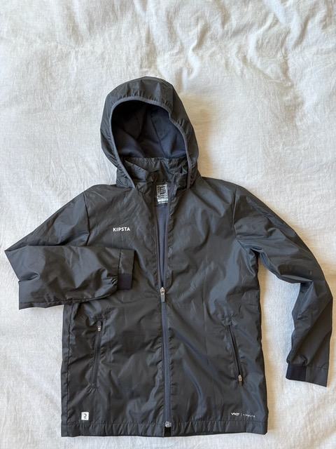 Prodam odlično ohranjeno vetrovko za treninge v deževnem ali vetrovnem vremenu Kipsta, velikost 8-9 let. Parkrat oblečena, kot nova. Pošljem tudi po pošti. Naprodaj tudi druga nogometna oblačila.
