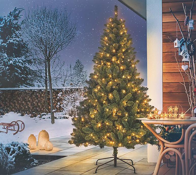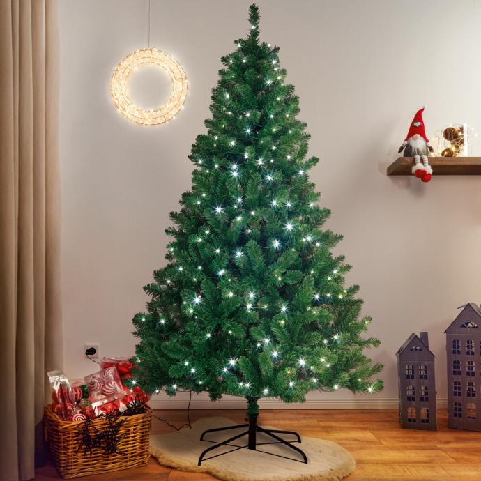 Umetna jelka Tramso je visoka 240 cm in je idealen osrednji element za vašo božično okrasitev. Drevo s premerom 137 cm je impresivnega videza in bo pričaralo praznično vzdušje v vašem domu ali na prostem. Jelka ima 1239 vejic iz kakovostnega PVC-ja, ki posnemajo naravno obliko jelke in ustvarjajo prepričljivo pristno podobo, s katero vas bo vsako leto znova razveselila.Izberite svetlobni sijaj: Toplo bela ali hladno belaTa umetna jelka ima z vgrajeno LED-razsvetljavo. Odločite se, ali želite svoj dom odeti v toplo ali hladno belo svetlobo ali pa v kombinacijo obojega. Preklapljanje med barvami svetlobe je povsem preprosto in ustvarite lahko tako vzdušje, kot je vam všeč. 470 LED-diod ima dolgo življenjsko dobo, zato lahko v praznični razsvetljavi uživate leto za letom.Preprosto upravljanje in vsestranske možnosti uporabeJelka Tramso je z robustnim kovinskim podstavkom varna in stabilna. Preprosto sestavljanje s sistemom natikanja vam omogoča, da lahko drevo hitro postavite in začnete z okraševanjem. S certifikatom IP44 je jelka primerna za uporabo v notranjih prostorih in na prostem. Tako lahko v prazničnem sijaju zasijejo tudi vaš vrt, balkon ali terasa.