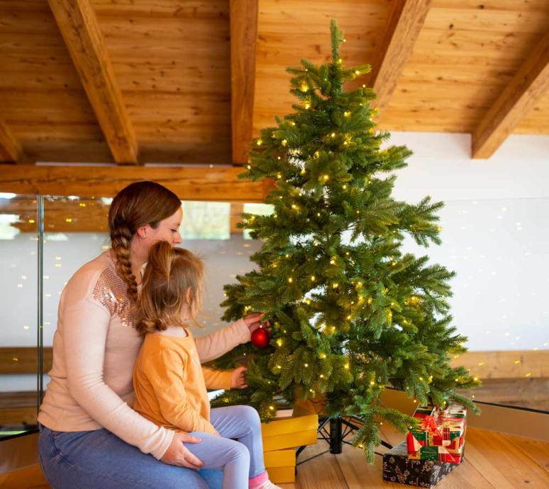 Umetno božično drevo navdušuje s svojim posebno naravnim videzom, saj se zaradi gostih in upogljivih vej iz kakovostne plastike drevo skoraj ne razlikuje od pravega božičnega drevesa. Zahvaljujoč robustnemu kovinskemu stojalu je božično drevo popolnoma varno, da se "vsako leto" ne prevrne. Drevo se hitro sestavi s pomočjo vtičnega sistema za hitro sestavo, vključno s pravljičnimi lučkami, in ga lahko okrasite po svojih željah. Pustite svoji ustvarjalnosti prosto pot in okrasite božično drevesce po svojih željah z umetnim snegom in svetlečimi kroglami. Zaradi svoje dolgotrajne uporabnosti so umetna božična drevesca idealna kot okrasni element za hotele, veleblagovnice in podjetja.