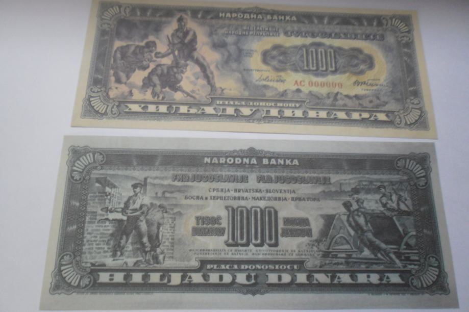 BANKOVEC JUGOSLAVIJA 1000 DINARA 1953 UNC REPLIKA