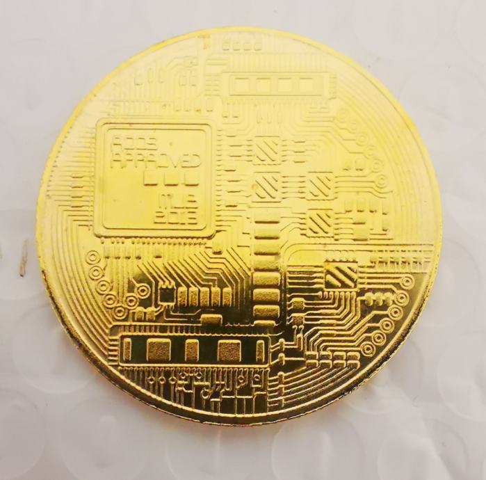 BITCOIN bitkoin kovanec zbirateljski okrasen oz spominski kovanec v zlati barvi. Tudi primeren kot darilo za kratkotrajno veselje obdarovanca.