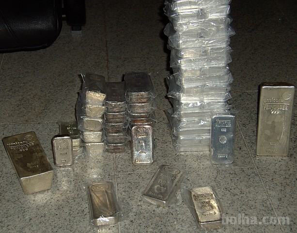 Odkupim vse vrste in vse teže naložbenih srebrnih palic, iz kovnic : Umicore , Heraeus , Argor Heraeus , Pamp , Credit Suisse , Royal Canadian Mint , Heimerle & Meule , Suisse Gold , Cook Island, Andorra, Engelhard, Metalor, Valcambi , Fortuna , Degussa , Ögussa , Johnson Matthey , Emirates Gold, Mario Villa, Volksbank in vse ostale.