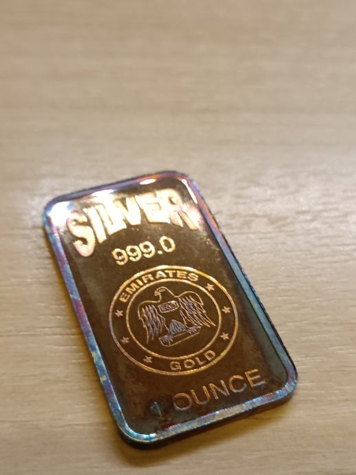 Prodam srebrno palico emirates gold 1oz z lepo patino.