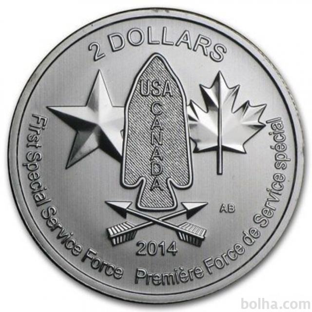 Srebrnik čistine .9999 v spomin na prve posebne enote v 2. svetovni vojni na skupnih misijah Kanade in ZDA.