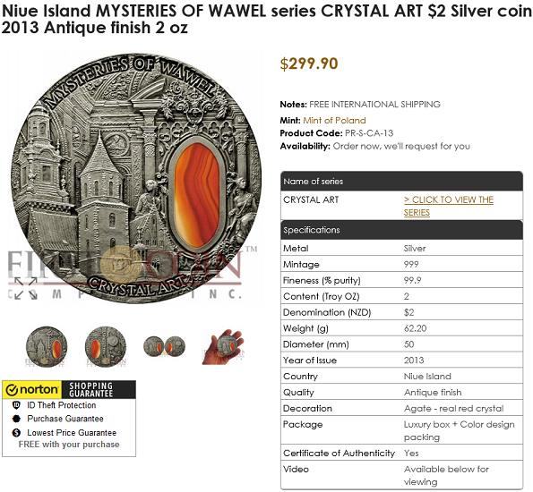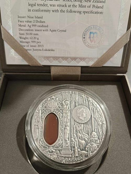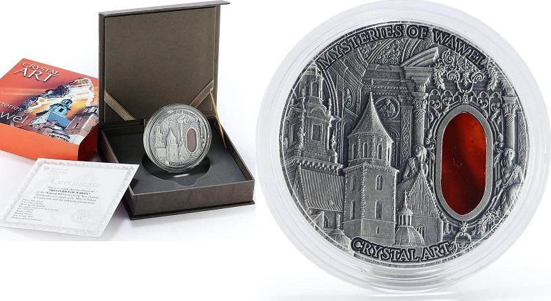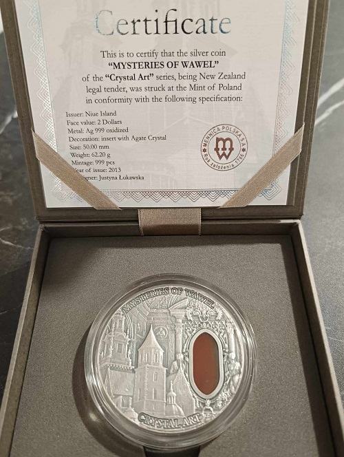 Srebrnik Niue Island MYSTERIES OF WAWEL series CRYSTAL ART $2 Silver coin 2013 Antique finish 2 oz