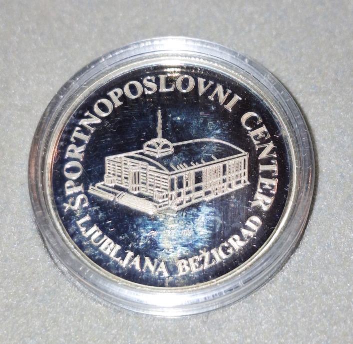 Prodam lepo ohranjen zbirateljski srebrnik čistine 925 ŠPORTNOPOSLOVNI CENTER LJUBLJANA BEŽIGRAD, Restavracija Discovery 1995, Jože F. & Miro B..