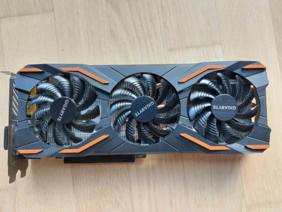 Rabljena grafična kartica Gigabyte 1080. Kartica je bila v uporabi za gaming od februarja 2018 do decembra 2022.