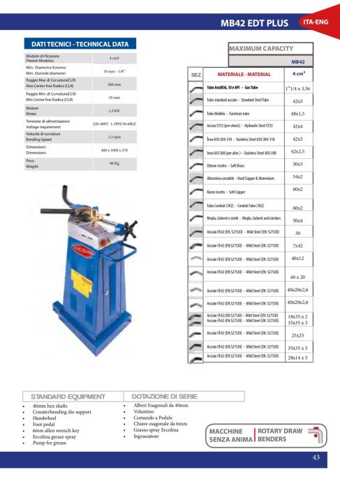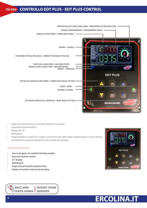 Upogibni stroj Ercolina Medi Bender 42 EDTP z novim digitalnim programatorjom, z nožnim pedalom naprej-nazaj. Vključena štiri orodja po vaši izbiri: