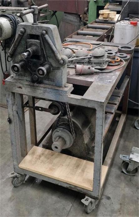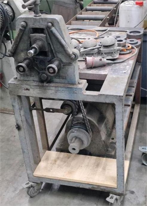 Upogibni krivilni stroj 400V, talijančnega proizvojalca, za upogibanje cevi in profila, v celoti funkcionalan in v dobrem stanju, z radno mizo, z standardni orodji za kvadratno/prvokutno/plosnato. Ostala orodja uz doplačilo.