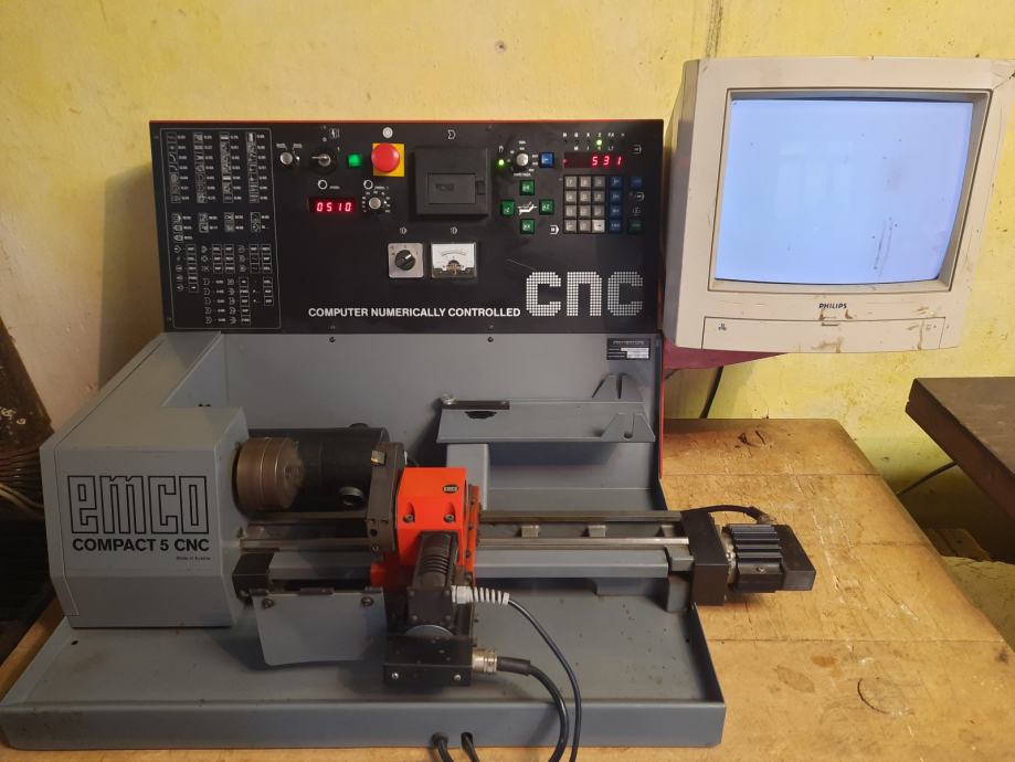 Prodam kvalitetno modelarsko CNC stružnico EMCO Compact 5, letnik 1991. Bila je kupljena pred leti z namenom predelave, tako da bi bila mogoča povezava z računalnikom za direktno pošiljanje kode. Projekt sem opustil in jo sedaj zaradi neuporabe prodajam. Deluje brezhibno, je odlično ohranjena in ima zelo malo delovnih ur-kupljena od učne ustanove. Je bolj primerna za obdelavo manjših aluminijastih in lesenih obdelovancev.