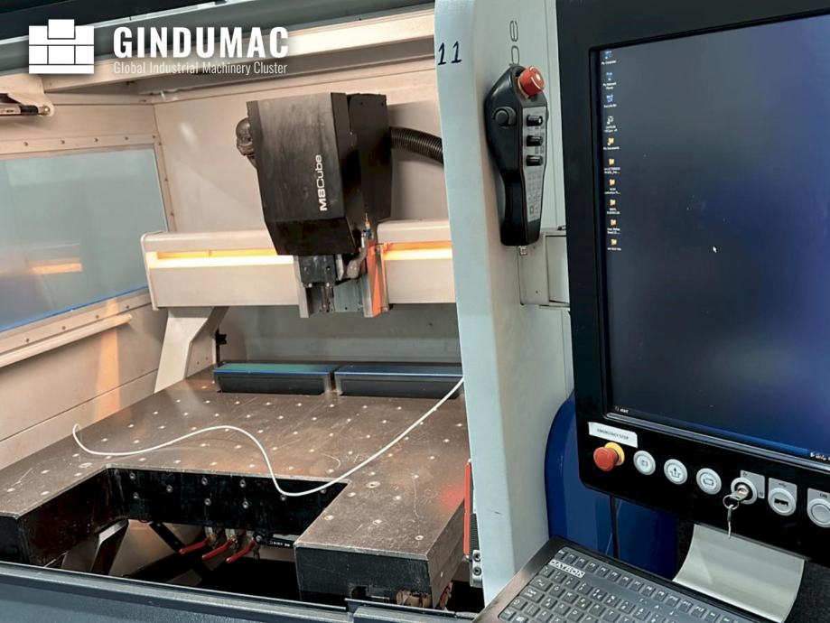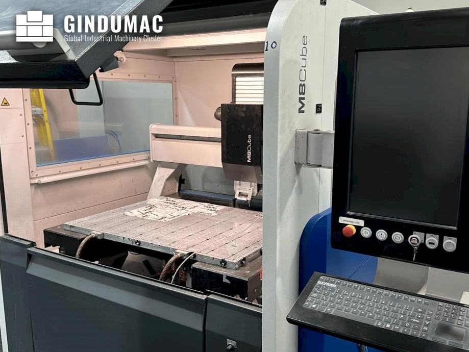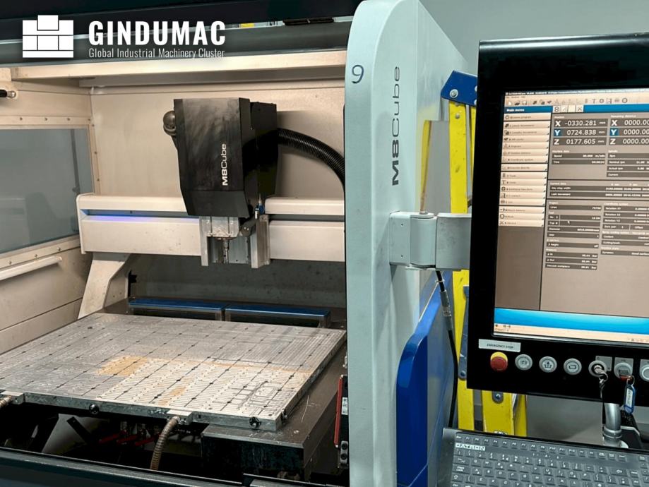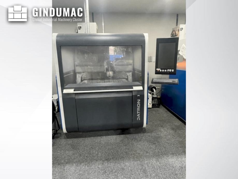 This DATRON M8 Cube Milling machine was manufactured in 2014 in Germany. The machine has a Datron CNC intuitive programming system Windows driven with a flat panel monitor. It is equipped with a max. spindle speed of 60,000 rpm and a drive system of digital servo ball screw which is on all axes with feed rates up to 22 m/min. Includes a tool Changer that has 5 fold HSK-E 25 (opt 10). See product brochure (EN) as PDF attached for more details.