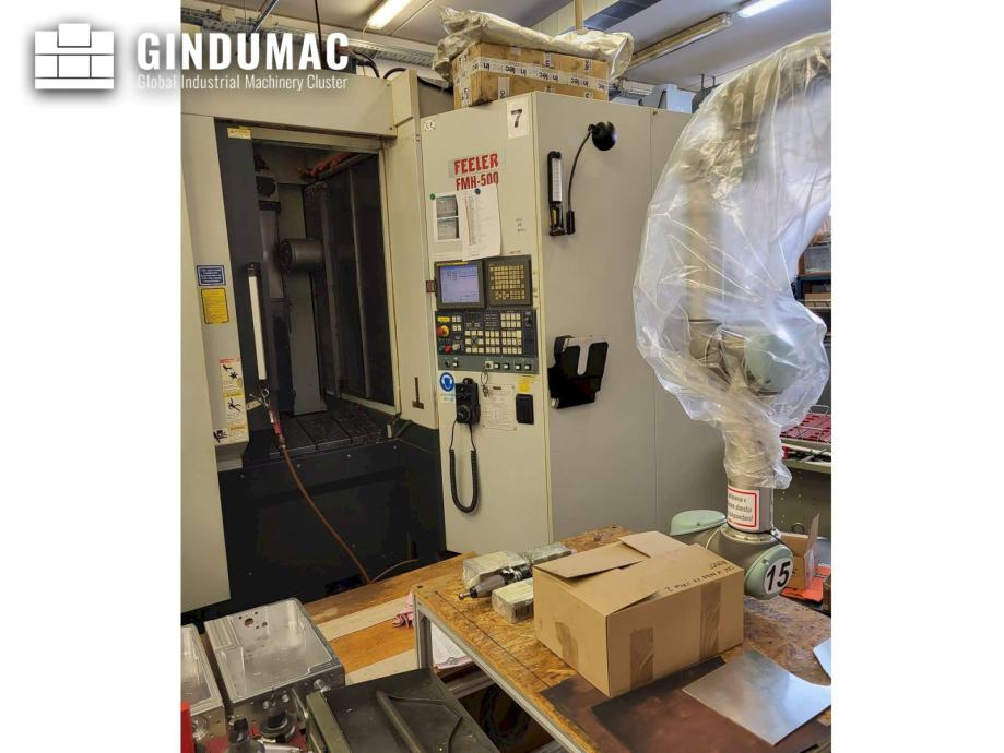 This Feeler FMH-500 horizontal machine center was made in the year 2007 in Taiwan. The machine has a spindle speed of 10000 rpm and 2 changing pallet tables. Accessories included in the offer: laser tool gauge, through-spindle cooling, 10,000 revolutions, 2x tower.