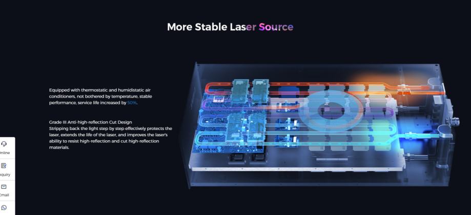 Laserji so sestavljeni iz kvalitetnih komponent priznanih svetovnih proizvajalcev (Yaskawa, SMC, Hiwin, IPG, Raycus, Panasonic,...)