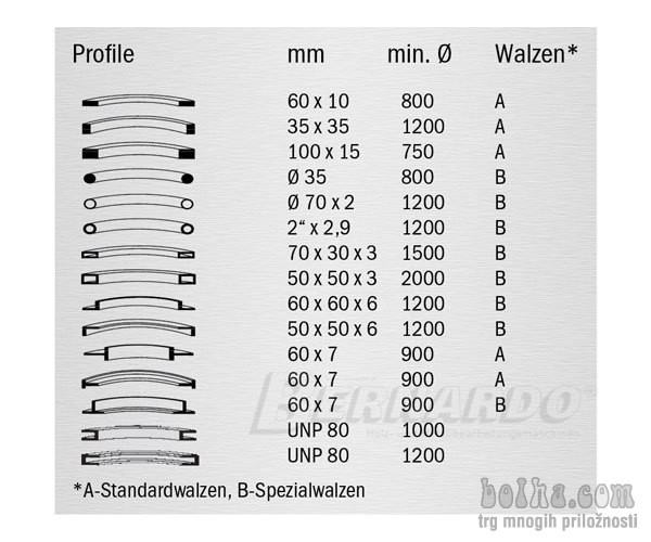 ODLIČEN STROJ ZA UPOGIBANJE RAZLIČNIH PROFILOV IN CEVI. STROJ LAHKO UPORABLJAMO V STOJEČEM ALI LEŽEČEM POLOŽAJU. SMER VRTENJA VALJEV LEVO/DESNO, VSE KOMANDE ZA UPRAVLJANJE STROJA SE VRŠIJO PREKO NOŽNE STOPALKE, KATERO SI LAHKO POSTAVUMO NA POLJUBNO MESTO OB STROJU.