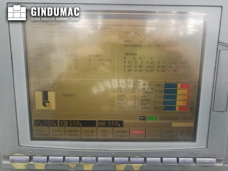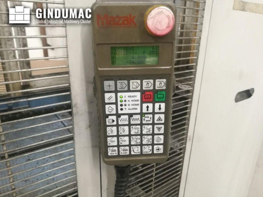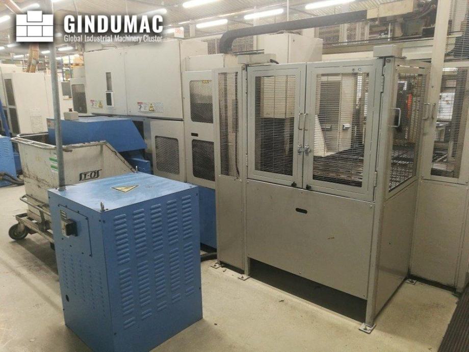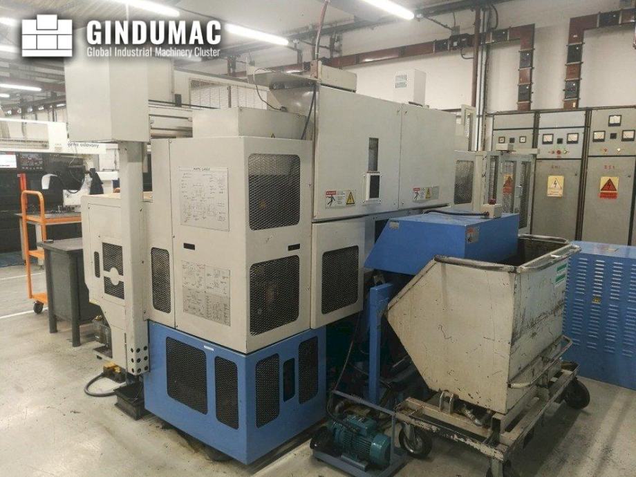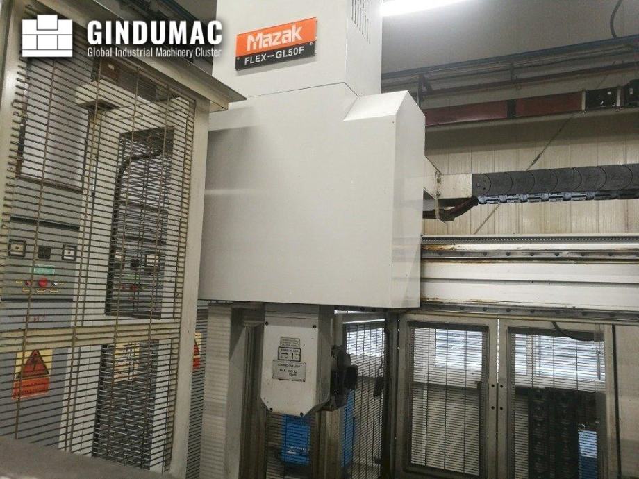 This MAZAK Multiplex 6100 + robot FLEX-GL50F Lathe was manufactured in the year 2001 in Japan. It is equipped with a Mazak Mazatrol 640T control unit and has 3 axis. The machine has a spindle speed of 6000 rpm, is in good condition and well maintained.