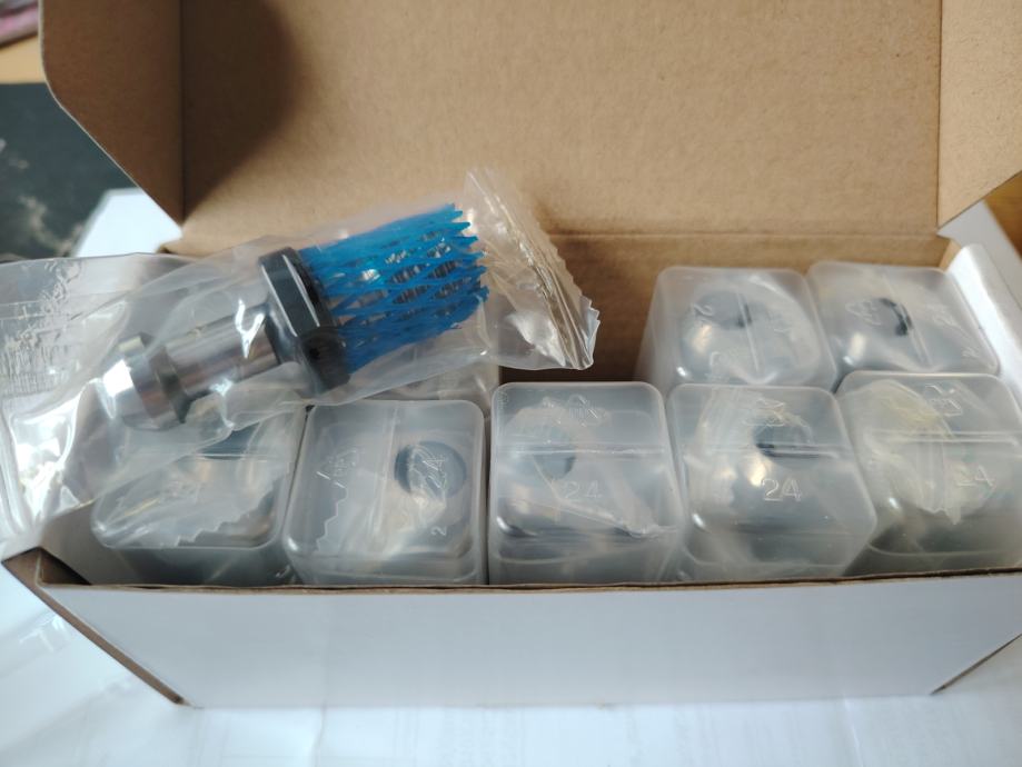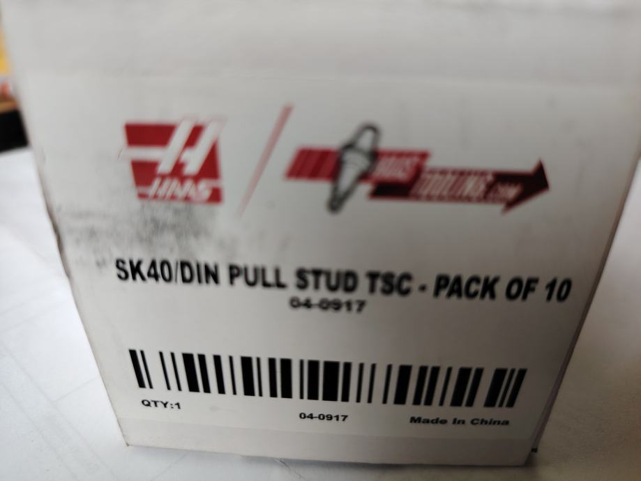 These SK40 \ DIN 69871 TSC pull studs/retention knobs are designed specifically for use in Haas CT40 \ SK40 (ISO40) machines. They feature a 45° knob angle, 15mm knob diameter, and 10mm neck diameter, with a M16x2.0 thread size. These pull studs have a through-hole for through-tool coolant (TSC). Pack of 10.