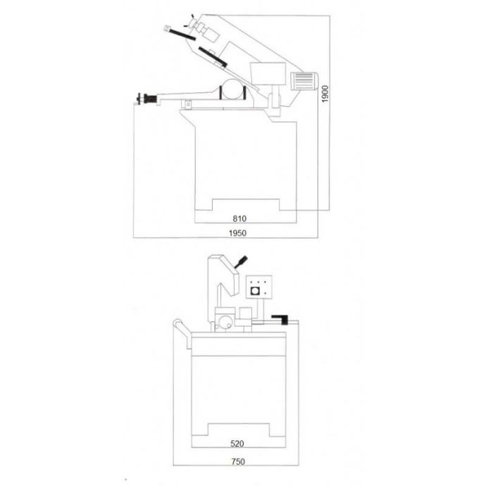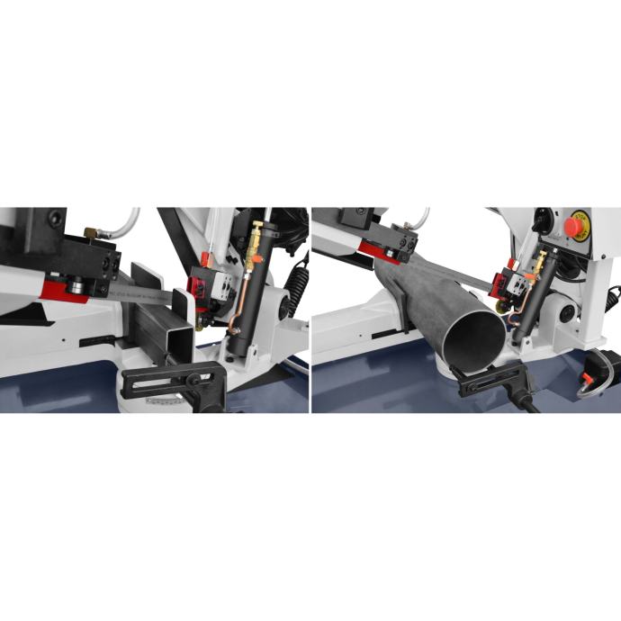• Tračna žaga za vodoravno rezanje omogoča rezanje v ravnini, pravokotni na os reženega materiala, pod katerim koli kotom v območju 0 °-60 °.