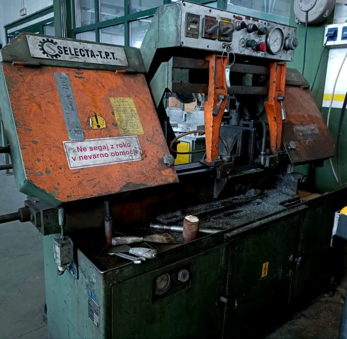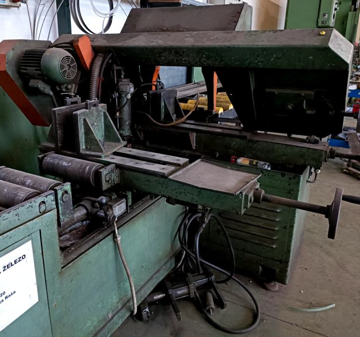 Prodaja se avtomatska tračna žaga, s hidravličnim avtomatskim podajanjem in pomikom ter s hidravličnim vpenjanjem.