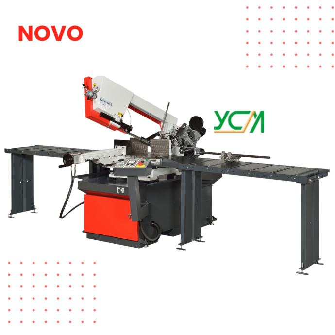 YCM-420 SAI je polavtomatska tračna žaga zasnovana za natančno rezanje cevi, kovinskih profilov in drugih kovinskih materialov. Žaga ima vgrajen inverter, ki omogoča brezstopenjsko nastavitev hitrosti lista, kar zagotavlja optimalen rez za različne materiale, manjšo obrabo lista, varčevanje z energijo in večjo varnost. Žaga je opremljena tudi s sistemom za hlajenje tračnega lista in manometrom za prikaz napetosti tračnega lista.