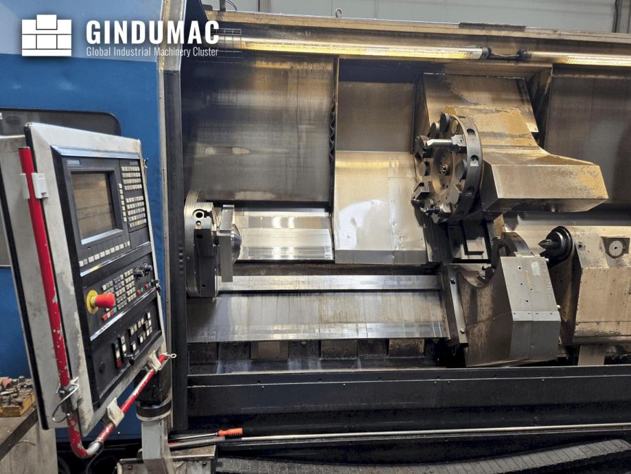 This HEYNUMAT 24 UK/4000 horizontal turning machine was manufactured in 2003. It features a robust spindle bore of 122 mm and a comprehensive spindle speed range up to 1800 rpm. The machine includes a CNC control Sinumerik 840C, ensuring precision and ease of operation. With a turning diameter over bed of 850 mm and a centre distance of 4000 mm, it's ideal for large-scale work. For more information about this horizontal turning machine, please reach out to us.