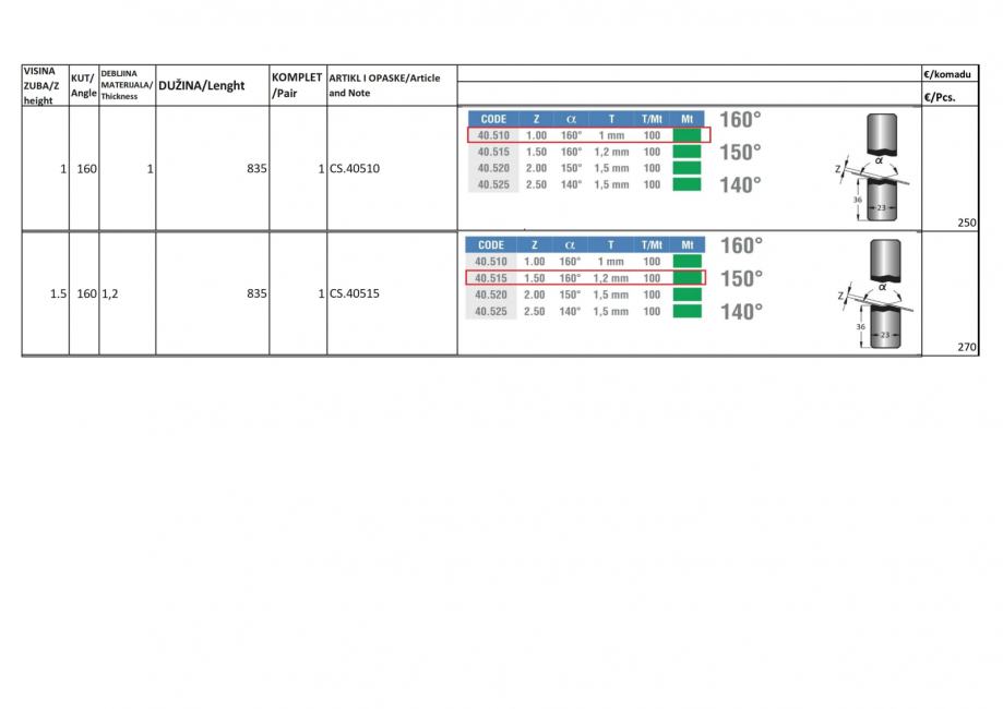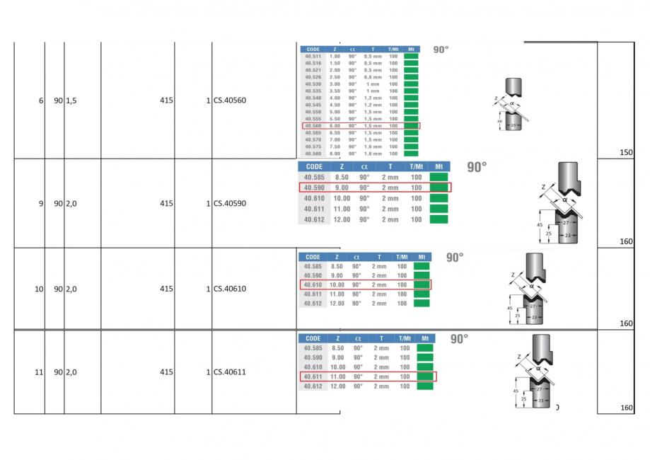 Prodajem alate za "Z" savijanja na abkant prešama. Alati su kaljeni i brušeni, rabljeni, u punoj dužini od 835 ili 415 mm. Oštećenja pri uporabi na alatima su estetske prirode. Formiraju oblk slova Z, za različite debljine i visine zuba. Sistem prihvata nosača Amada. Cijene su u EUR/komadu, EXW. Pazin (Hrvaška), plaćanje avansno. Za cjelokupnu kupnju popust.
